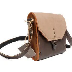 Hasır Rengi Kağıt İp Deri Kapaklı Çapraz Çanta