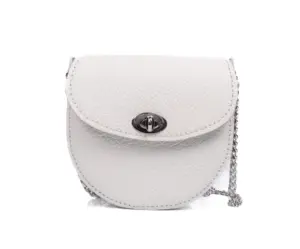 ÖNÜ GÜMÜŞ RENK METAL TOKALI, ASKILARI GÜMÜŞ RENK ZİNCİR OLAN YUVARLAK OMUZ ÇANTASI