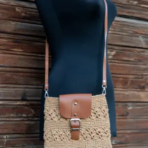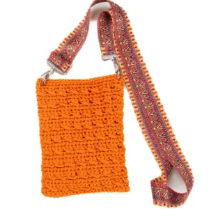 Turuncu Çapraz Tığ Örgü Makrome Çanta