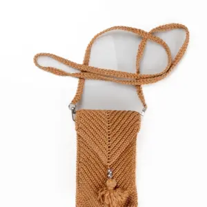 Açık Kahverengi Makrome Tığ İşi Zarf Telefon Çantası