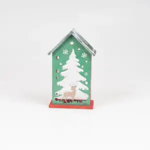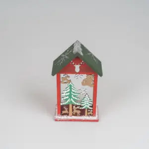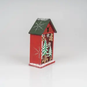 çam ağaçlı ayıcıklı kırmızı ev mumluk