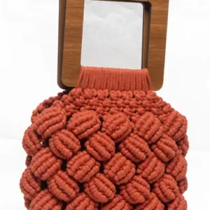Kiremit Rengi Zincir Saplı Makrome Telefon Çantası