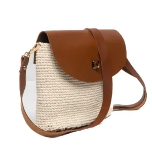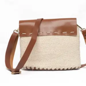 Makrome Krem Rengi Deri Kapaklı Çanta