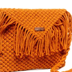 Turuncu Kağıt İp Saçaklı Clutch Portföy Çanta
