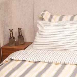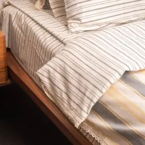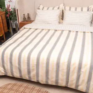 doğal keten kenar dantelli sarı çizgili nevresim takımı