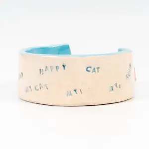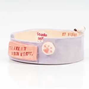 El Yapımı Pati Desenli Kahverengi Kedi Mama Su Kabı