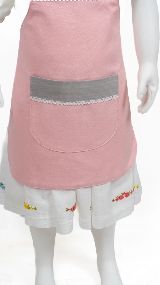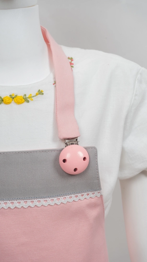 pembe ve gri kumaş üzerine beyaz fisto cep detaylı