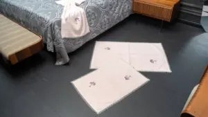 Kenar dantelli elde işlemeli pudra banyo paspas takımı