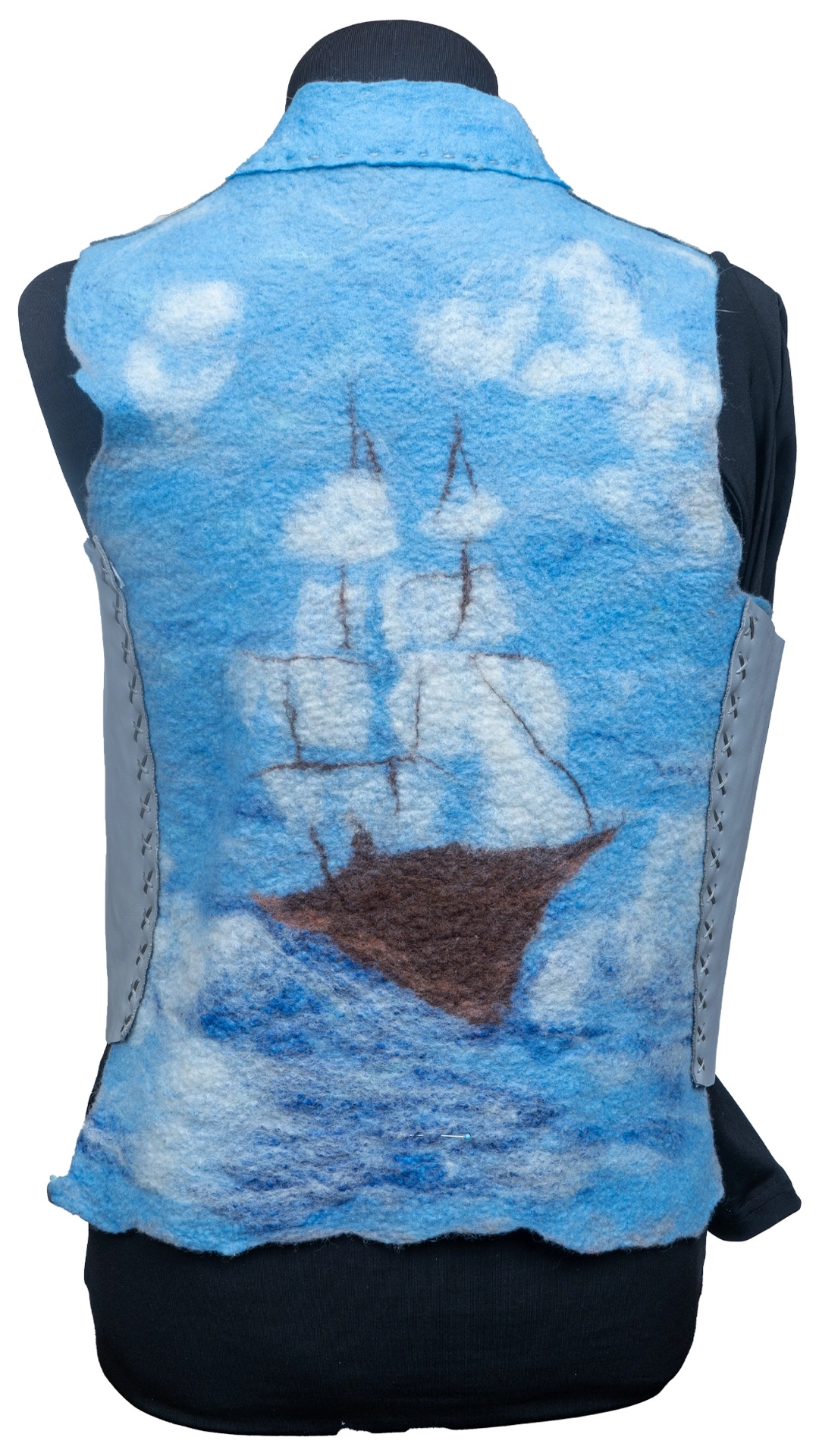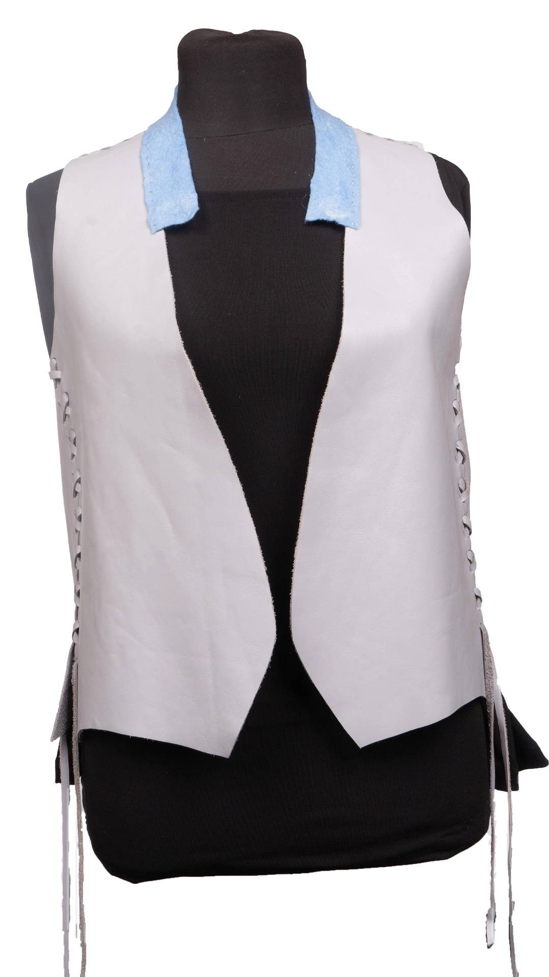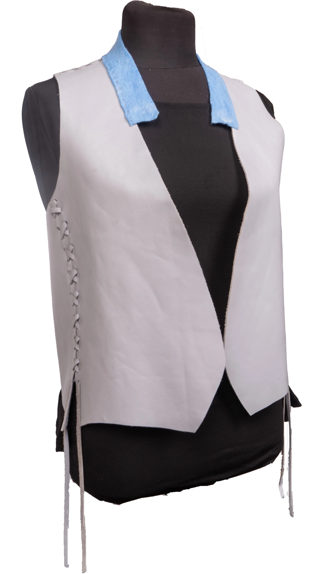ARKASI ISLAK KEÇE DESENLİ ÖNLERİ DERİ YELEK.