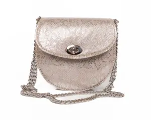 ÖNÜ GÜMÜŞ RENK METAL TOKALI, ASKILARI GÜMÜŞ RENK ZİNCİR OLANYUVARLAK OMUZ ÇANTASI