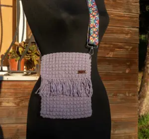 Füme Makrome Tığ Örgü Boncuk Model Çapraz Çanta