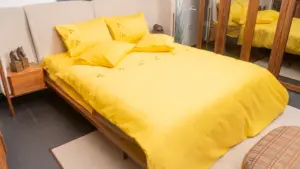 Pamuk Saten Sarı Nakışlı Çift Kişilik Nevresim Takımı